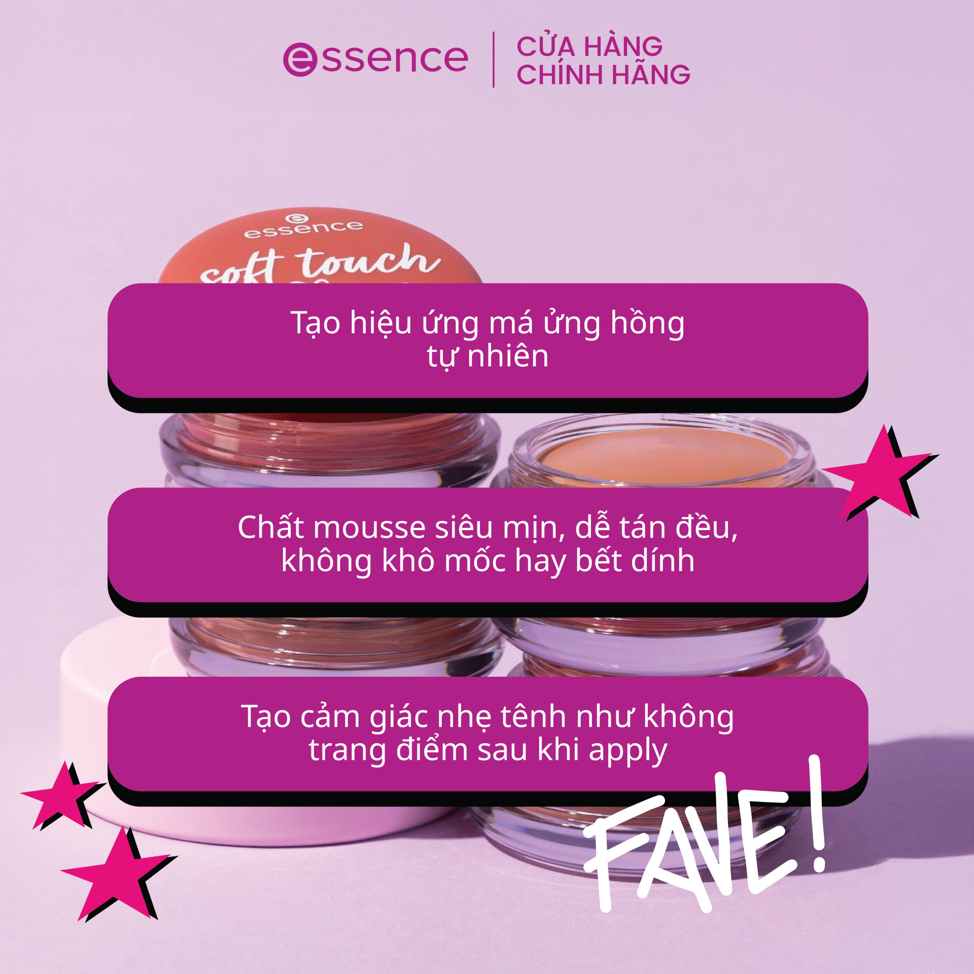 • Má hồng kem bông mềm mịn, bền màu ESSENCE Soft Touch Mousse Blush 5g